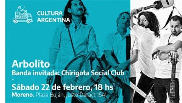 Este sábado 22 de febrero a las 18 horas, la banda de folk rock "Arbolito" dará un show gratuito en la Plaza Buján de Paso del Rey. También participará Chirigota Social Club como banda invitada.