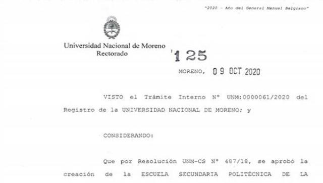 Por Resolución UNM-R N° 125/20 del día 9 de octubre de 2020 se ha resuelto posponer el acto público de sorteo de vacantes de la ESCUELA SECUNDARIA POLITÉCNICA DE LA UNIVERSIDAD NACIONAL DE MORENO (ESPUNM), previsto para el día 14 de octubre de 2020 de acuerdo al Calendario Escolar 2021, para el día 30 de octubre de 2020.