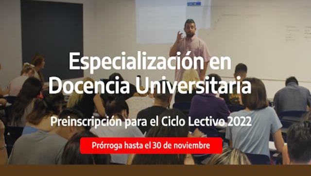 PRÓRROGA Carrera de Posgrado Especialización en Docencia Universitaria - Preinscripción 2022