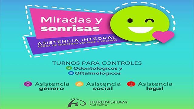 La municipalidad de Hurlingham brinda asistencia integral y cercana a los habitantes del distrito, a través del programa "Miradas y sonrisas" de brindan turnos para controles odontológicos y oftalmológicos, vacunación de calendario, trabajadora social, género y legal.