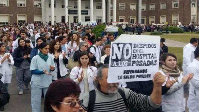 Las y los manifestantes rodearon el hospital tomados de la mano y también realizaron "la ronda" marchando en la rotonda del predio. Intentan hacer visible el problema y denuncian el vaciamiento en materia de salud. Desde diciembre de 2015 a la fecha, se produjeron más de 1300 despidos.