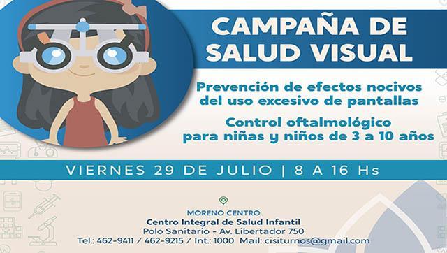 El Municipio de Moreno, a través de la Secretaría de Salud y Ambiente, estará llevando a delante la “Campaña de Salud Visual”, destinada principalmente a la prevención de efectos nocivos del uso excesivo de pantallas en niñas y niños de 3 a 10 años que residan en el partido de Moreno.