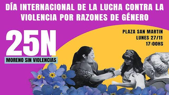 El Municipio de Moreno, a través de la Secretaría de Mujeres, Géneros y Diversidades, realizará una jornada de difusión en el marco del "Día de la lucha contra la violencia por razones de género", el lunes 27 de noviembre, a las 17 horas, en la plaza San Martín.