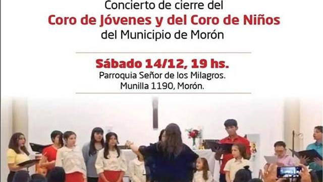 El próximo sábado 14 de diciembre, los coros de niños y jóvenes de Morón ofrecerán un concierto muy especial para despedir el año, a partir de las 19 horas, en la Parroquia Señor de los Milagros, Munilla 1190, Morón Centro.